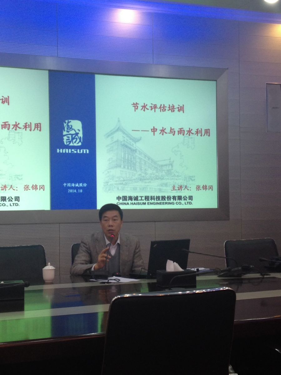 2014年11月25日,上海市水务业务受理中心组织各区(县)水务局从事节水设施设计方案审核的人员和《节水设施评估报告》编制单位相关人员进行了“节水审批实务培训”。我公司给排水专业总监张锦冈继去年后再次受上海市水务业务受理中心委托,对“中水及雨水利用”进行培训宣讲。