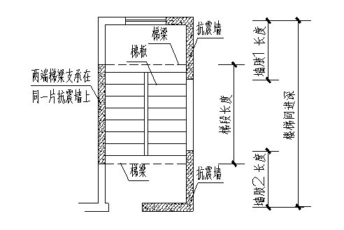 1、取“梯段长度和楼梯间进深2/3的较大值”,当不能做到“梯板两端梯梁支承在同一片抗震墙上”时,保证抗震墙有一定长度以体现“足够刚度”。